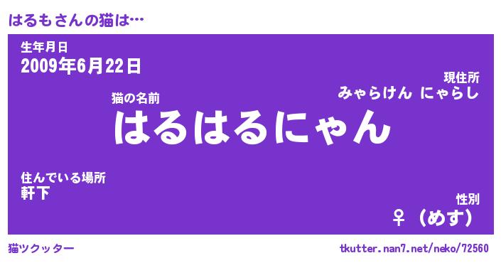 | 2回繰り返すあだ名 | 『はるはる』『ははるる』『いらいら』 |