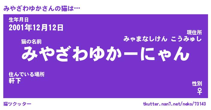 | ヒーロー風カッコイイあだ名 | 『スーパーミヤザワユカ』『銀牙騎士ミヤ』 |