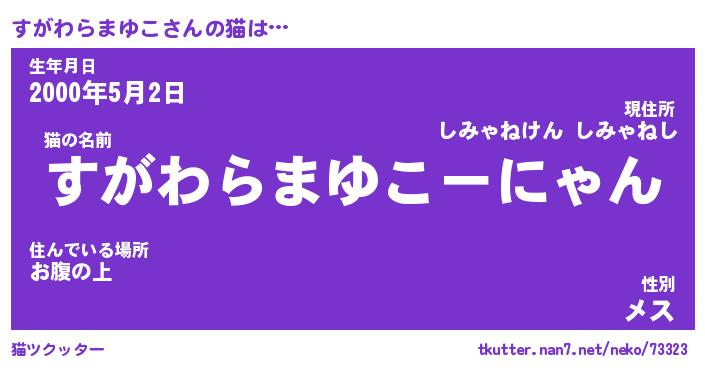 | 意味不明あだ名 | 『ペロリンすがわらまゆこ』 |