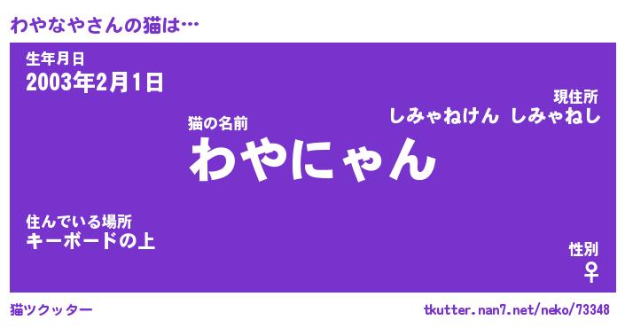 | 意味不明あだ名 | 『ペロリンわやなや』『永久保存わやなや』 |