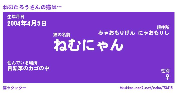 | ポケモン風あだ名 | 『ネムチュウ』『ネムタダネ』 |