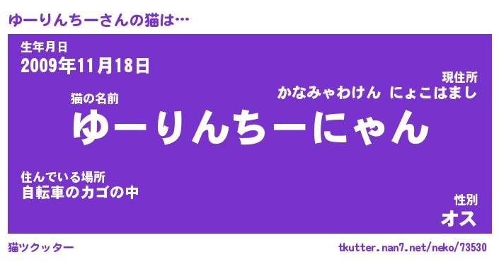 | 男性向けラノベタイトル風あだ名 | 『ゆーりんちーの憂鬱』 |