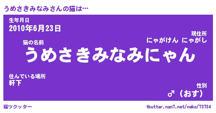 | ファンタジー風あだ名 | 『ウメフェル』『ファントムウメス』 |