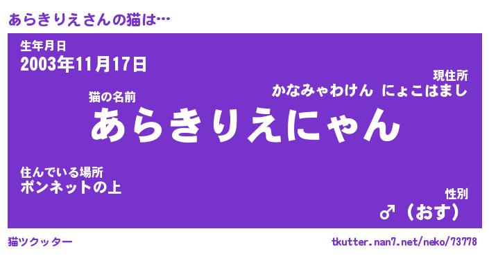 | 生年月日? …「くろねこ」 | 8月01日 10:16 |