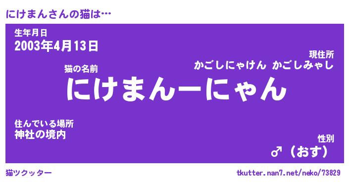 | 肩書あだ名 | 『にけまん店長』『にけまん総理大臣』 |