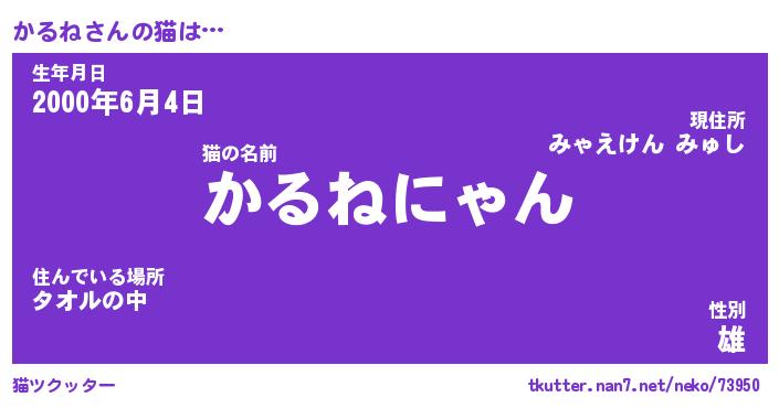 | 意味不明あだ名 | 『ペロリンかるね』『かるねフォーエバー』 |