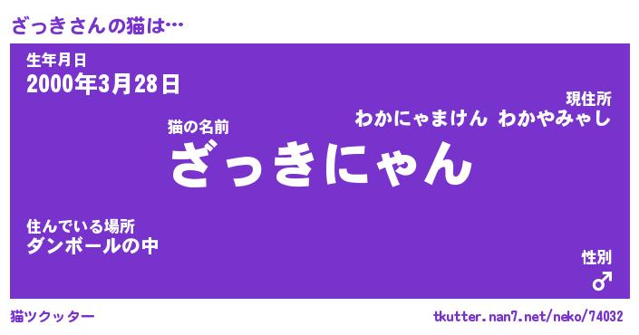 | ポケモン風あだ名 | 『ザッチュウ』『ザッキダネ』 |