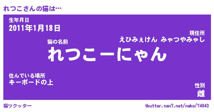 | 意味不明あだ名 | 『ペロリンれつこ』『れつこフォーエバー』 |