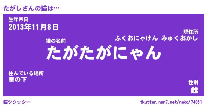 | ポケモン風あだ名 | 『タガチュウ』『タガシダネ』 |