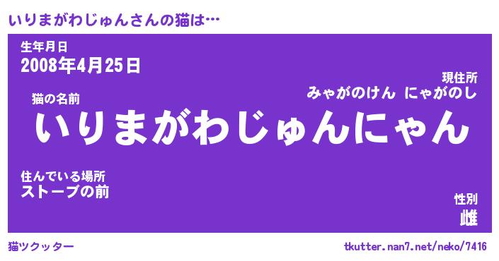 | 女子向けラノベタイトル風あだ名 | 『(仮)いりまがわじゅんのやんごとなき事情』 |