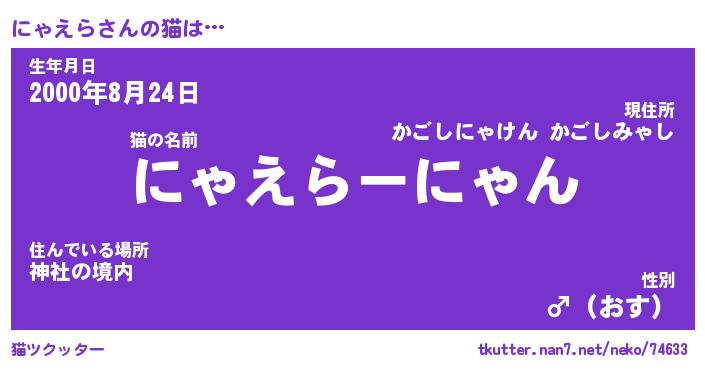 | ファンタジー風あだ名 | 『ニャフェル』『エターナルニャエラー』 |
