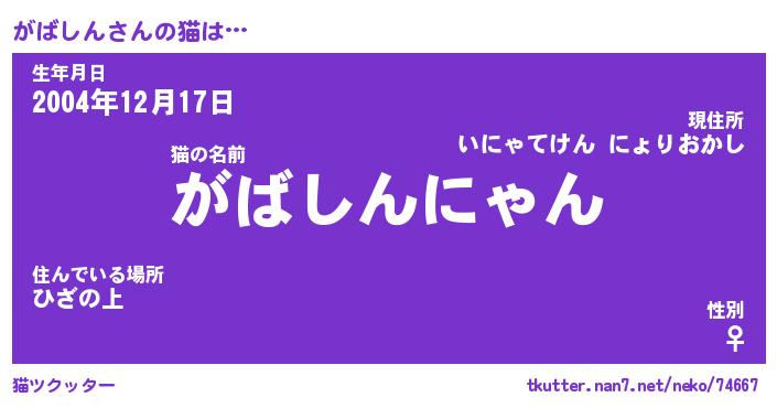 | 意味不明あだ名 | 『ペロリンがばしん』『永久保存がばしん』 |