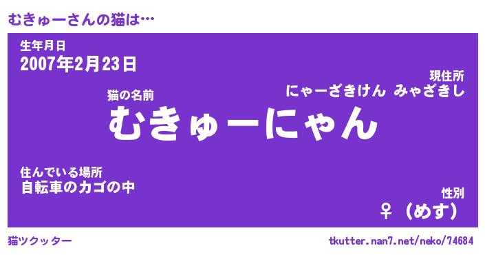 | 男性向けラノベタイトル風あだ名 | 『むきゅーの憂鬱』 |