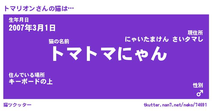 | ポケモン風あだ名 | 『トマチュウ』『トマリダネ』 |