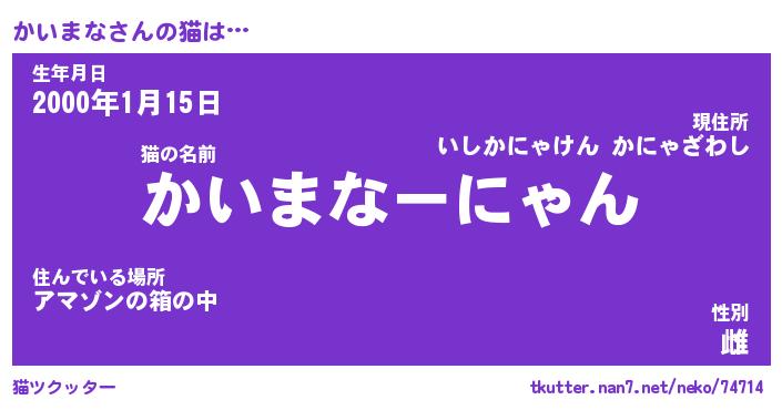 | 意味不明あだ名 | 『ペロリンかいまな』『永久保存かいまな』 |