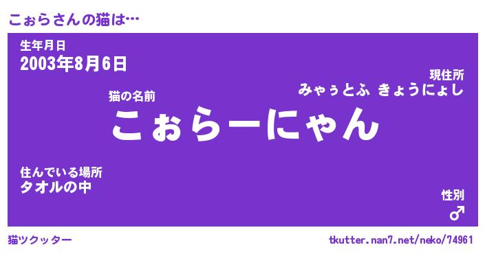 | 生年月日? …「くろねこ」 | 8月01日 10:16 |