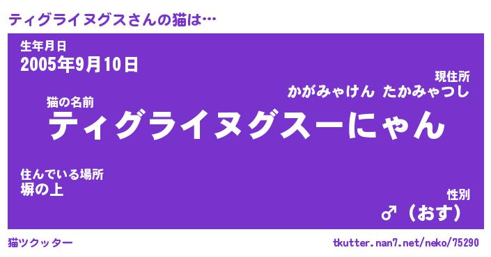 | ポケモン風あだ名 | 『ティチュウ』『ティグダネ』 |