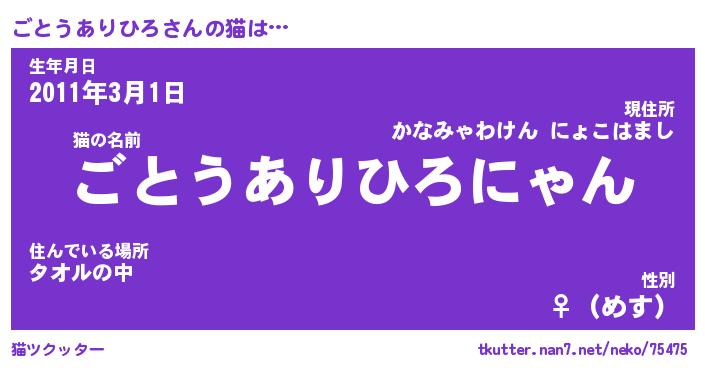 | 男性向けラノベタイトル風あだ名 | 『ごとうありひろの憂鬱』 |