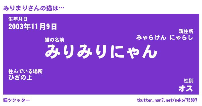| ポケモン風あだ名 | 『ミリチュウ』『ミリマダネ』 |