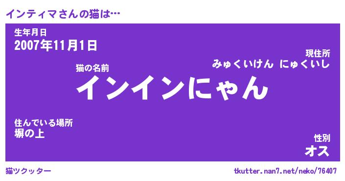 | 可愛いあだ名 | 『イんイん』『インちー』 |
