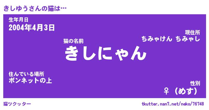 | 意味不明あだ名 | 『ペロリンきしゆう』『永久保存きしゆう』 |