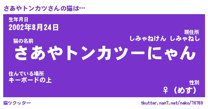 | 男性向けラノベタイトル風あだ名 | 『サアヤトンカツアートオンライン』 |