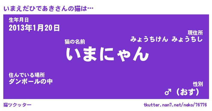 | ポケモン風あだ名 | 『イマチュウ』『イマエダネ』 |