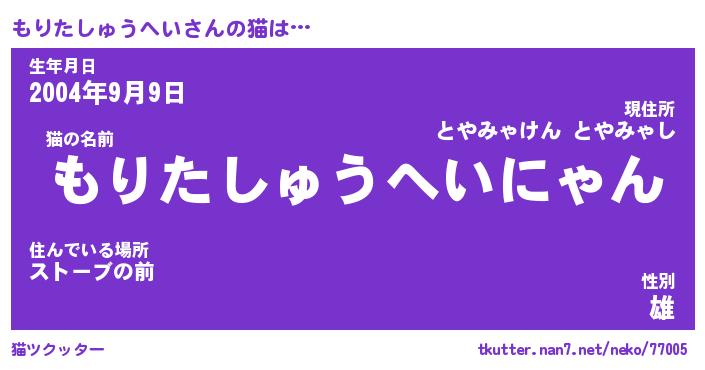 | ツイッター | もりたしゅうへいさんのツイッターID『konnyaku_nyan』 |
