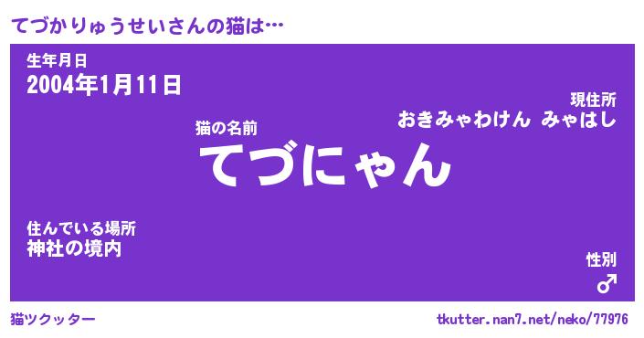 | ポケモン風あだ名 | 『テヅチュウ』『テヅカダネ』 |