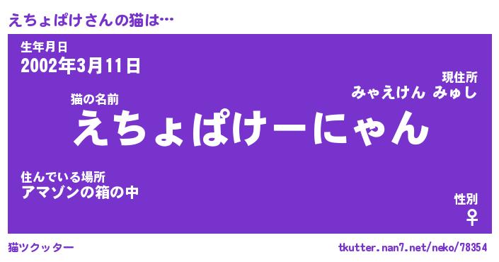 | 欧米人風あだ名 | 『マイケルえちょぱけ』 |