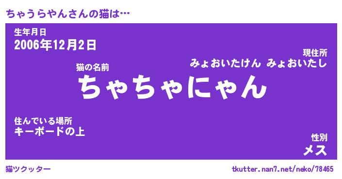 | 2回繰り返すあだ名 | 『ちゃちゃ』『ちちゃゃ』『ぬらぬら』 |