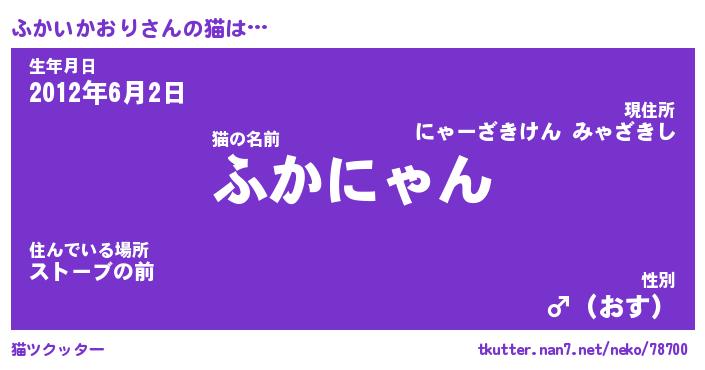 | ポケモン風あだ名 | 『フカチュウ』『フカイダネ』 |