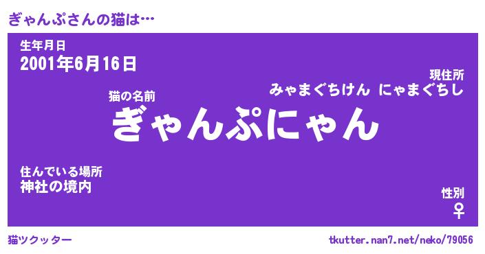 | 男性向けラノベタイトル風あだ名 | 『ぎゃんぷの憂鬱』 |