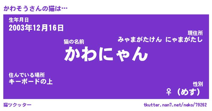 | ファンタジー風あだ名 | 『カワフェル』『エターナルカワソウー』 |
