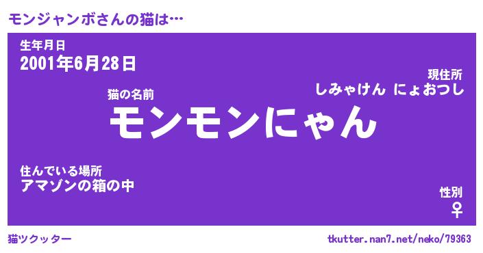 | ツイッター | モンジャンボさんのツイッターID『katatsumuri_nyan』 |
