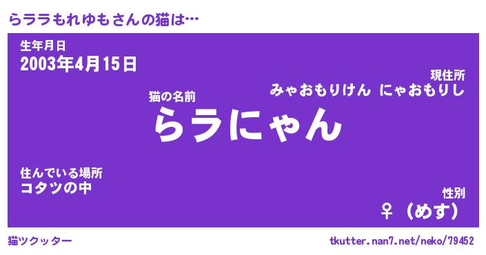 | ヘコむあだ名 | 『らラもー』『牛乳』『らラお』 |