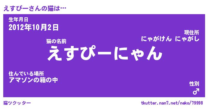| 意味不明あだ名 | 『ペロリンえすぴー』『永久保存えすぴー』 |