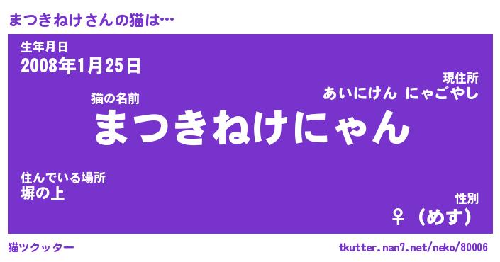 | 男性向けラノベタイトル風あだ名 | 『まつきねけの憂鬱』 |