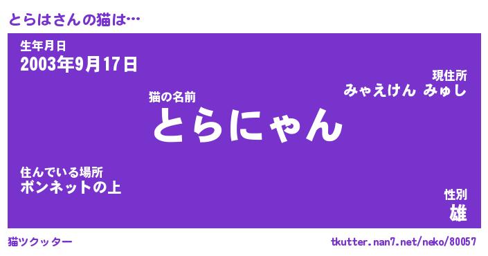 | 肩書あだ名 | 『とらは店長』『とらは国家主席』 |
