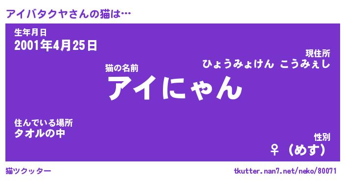 | 生年月日? …「くろねこ」 | 8月01日 10:16 |