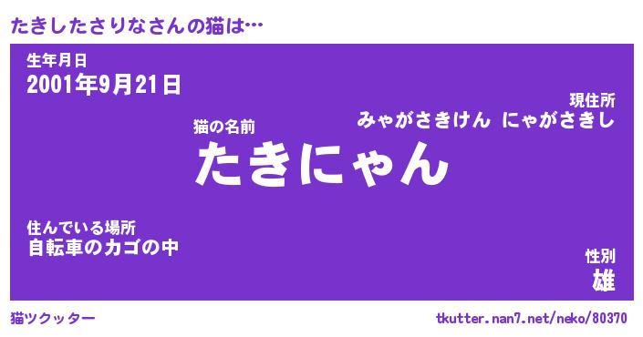 | ポケモン風あだ名 | 『タキチュウ』『タキシダネ』 |