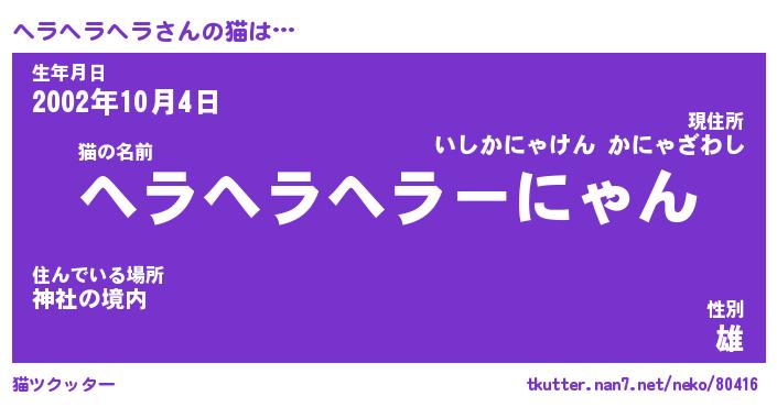 | 生年月日? …「くろねこ」 | 8月01日 10:16 |