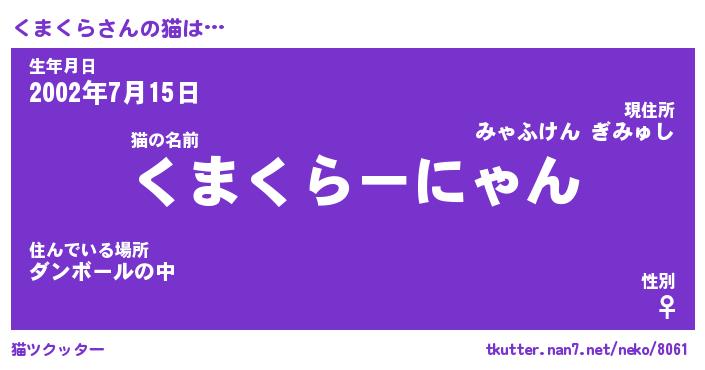 | 生年月日? …「くろねこ」 | 8月01日 10:16 |