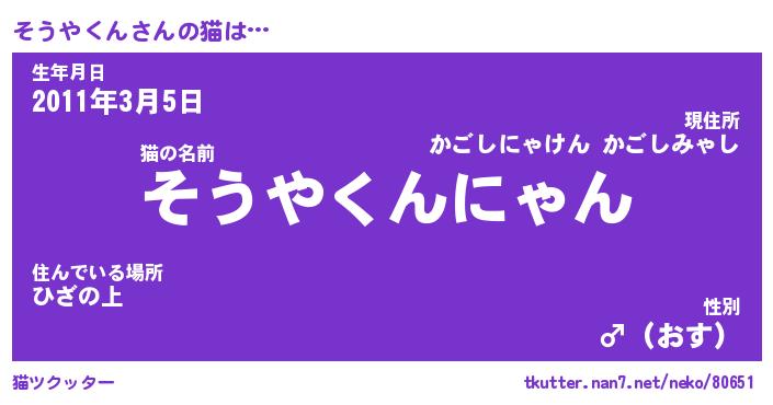 | ツイッター | そうやくんさんのツイッターID『renkon_nyan』 |