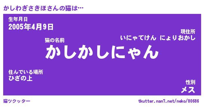 | ツイッター | かしわぎさきほさんのツイッターID『namakemono_nyan』 |