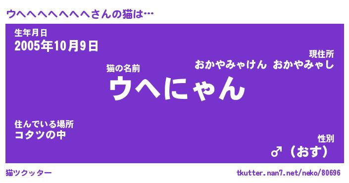| ポケモン風あだ名 | 『ウヘチュウ』『ウヘヘダネ』 |