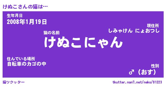 | 意味不明あだ名 | 『ペロリンけぬこ』『けぬこフォーエバー』 |