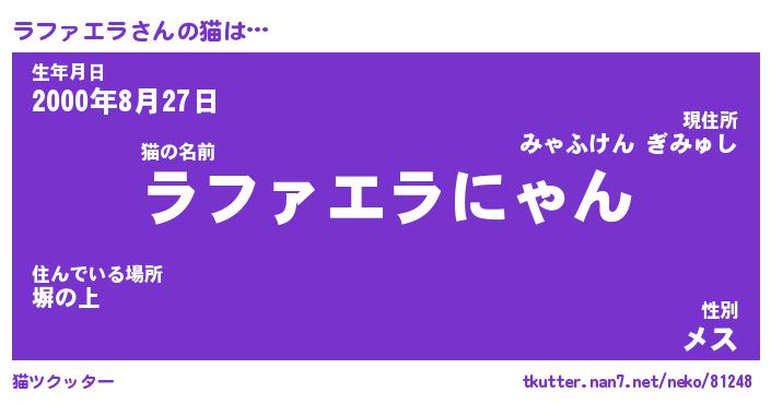 | ファンタジー風あだ名 | 『ラフフェル』『エターナルラファエラー』 |