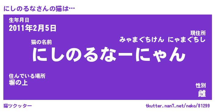 | 肩書あだ名 | 『にしのるな社長令嬢』『にしのるな教授』 |