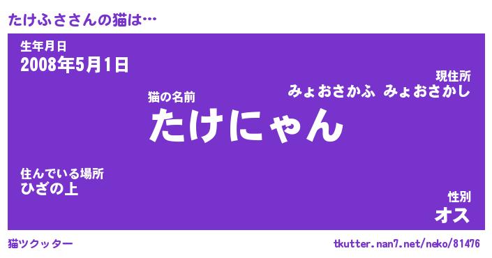 | ポケモン風あだ名 | 『タケチュウ』『タケフダネ』 |